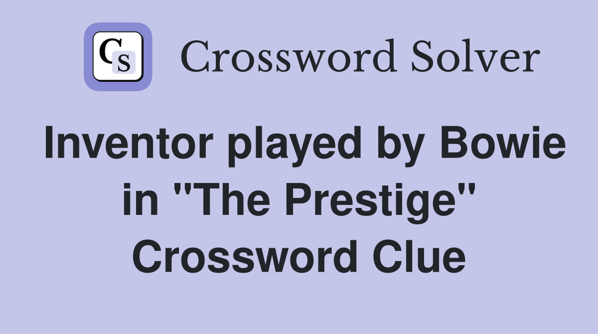 Inventor played by Bowie in quot The Prestige quot Crossword Clue Answers