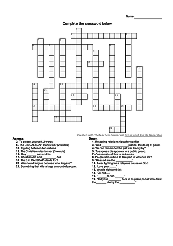 Peace and Conflict Crossword AQA Teaching Resources