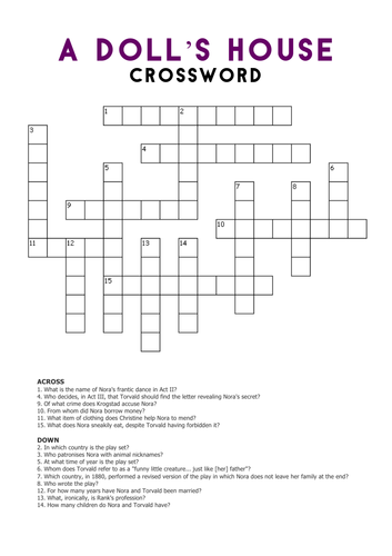A Doll s House: Crossword Teaching Resources