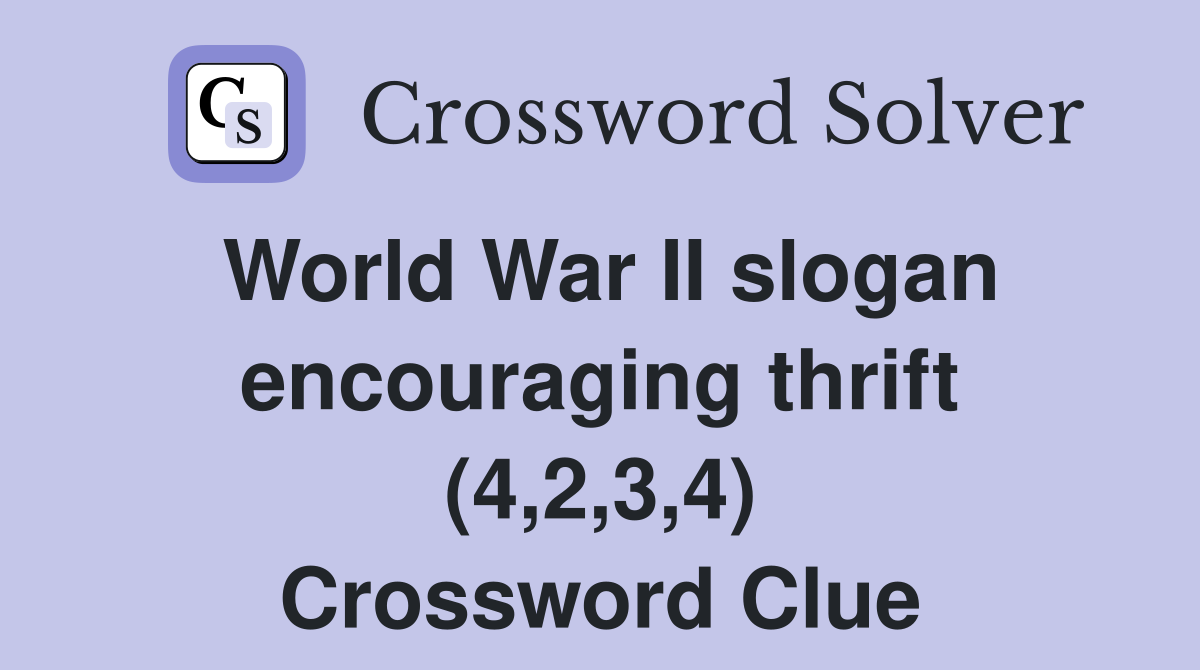 World War II slogan encouraging thrift (4 2 3 4) Crossword Clue