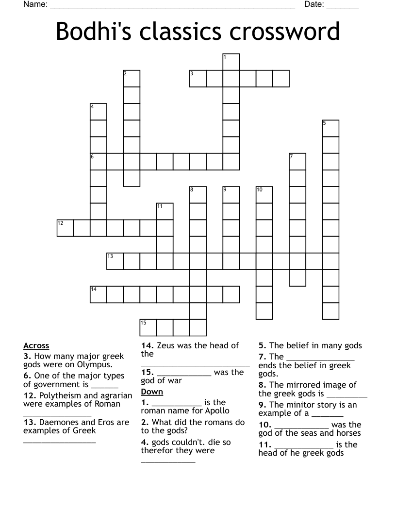 Free Crossword Puzzles to Print : Classic Books Authors Crossword