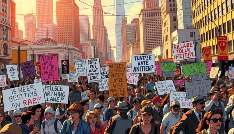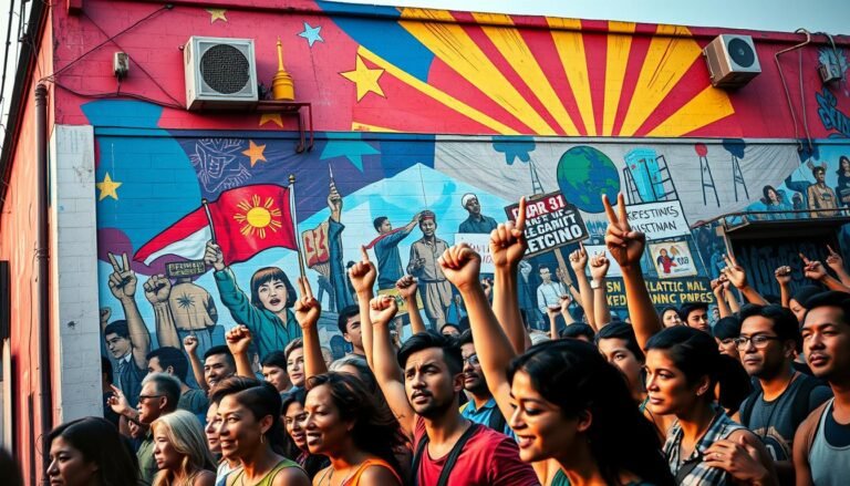 Vintage Political Protest Background with Bold Colors Inspired by 1960s