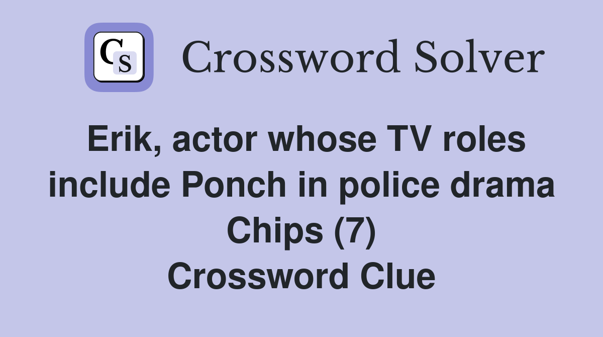 Erik actor whose TV roles include Ponch in police drama Chips (7