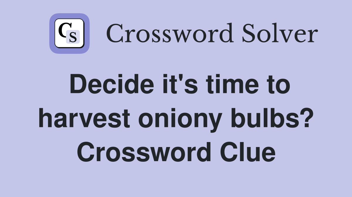 Decide it s time to harvest oniony bulbs? Crossword Clue Answers