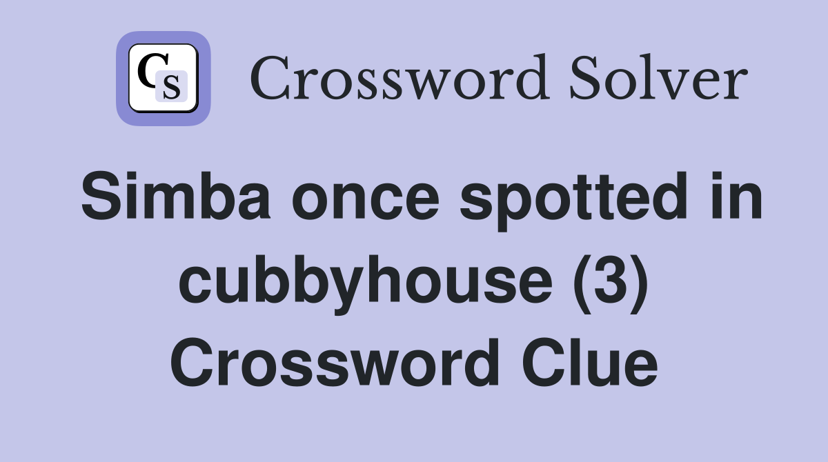 Simba once spotted in cubbyhouse (3) Crossword Clue Answers