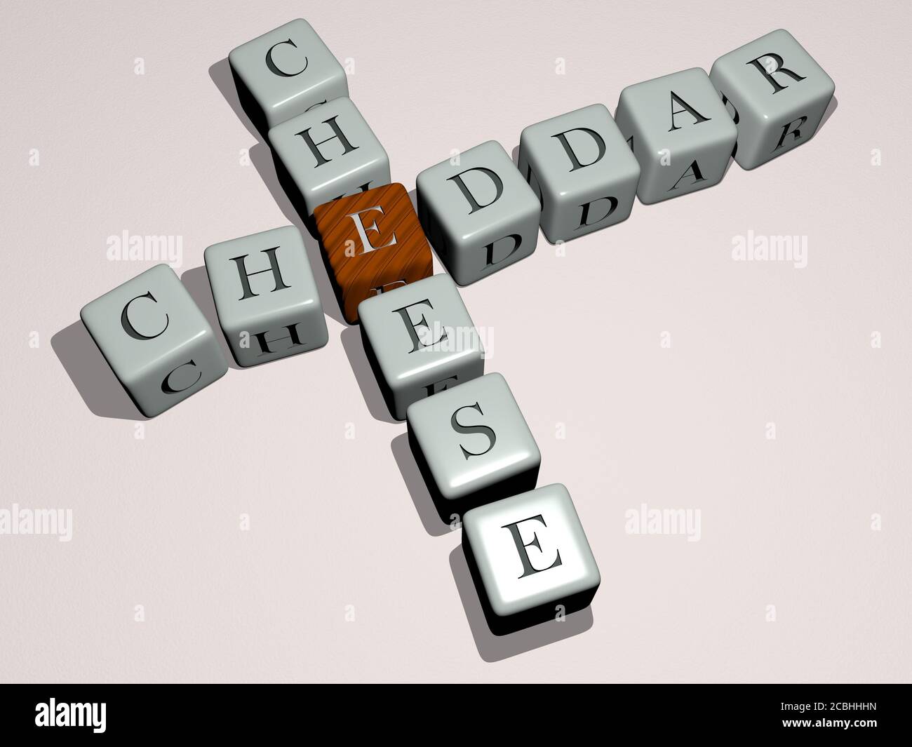 cheddar cheese crossword by cubic dice letters 3D illustration for