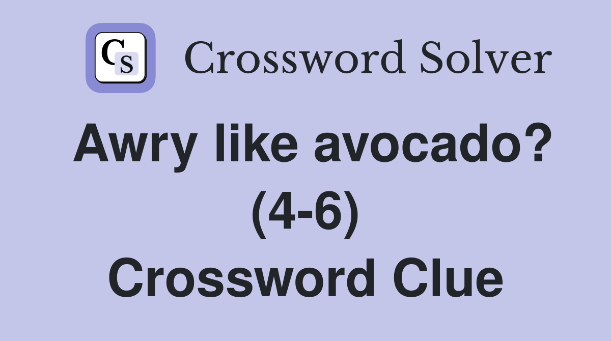 Awry like avocado? (4 6) Crossword Clue Answers Crossword Solver