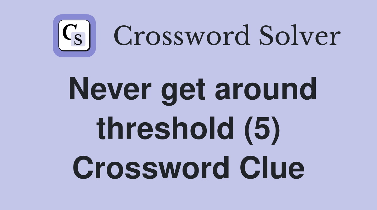 Never get around threshold (5) Crossword Clue Answers Crossword Solver