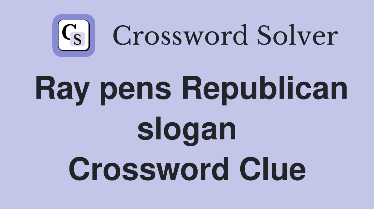 Ray pens Republican slogan Crossword Clue Answers Crossword Solver