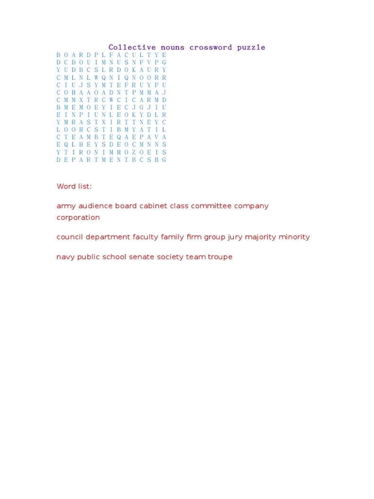 Collective Nouns (People Things) Crossword Puzzle #2 by Reading Spotlight