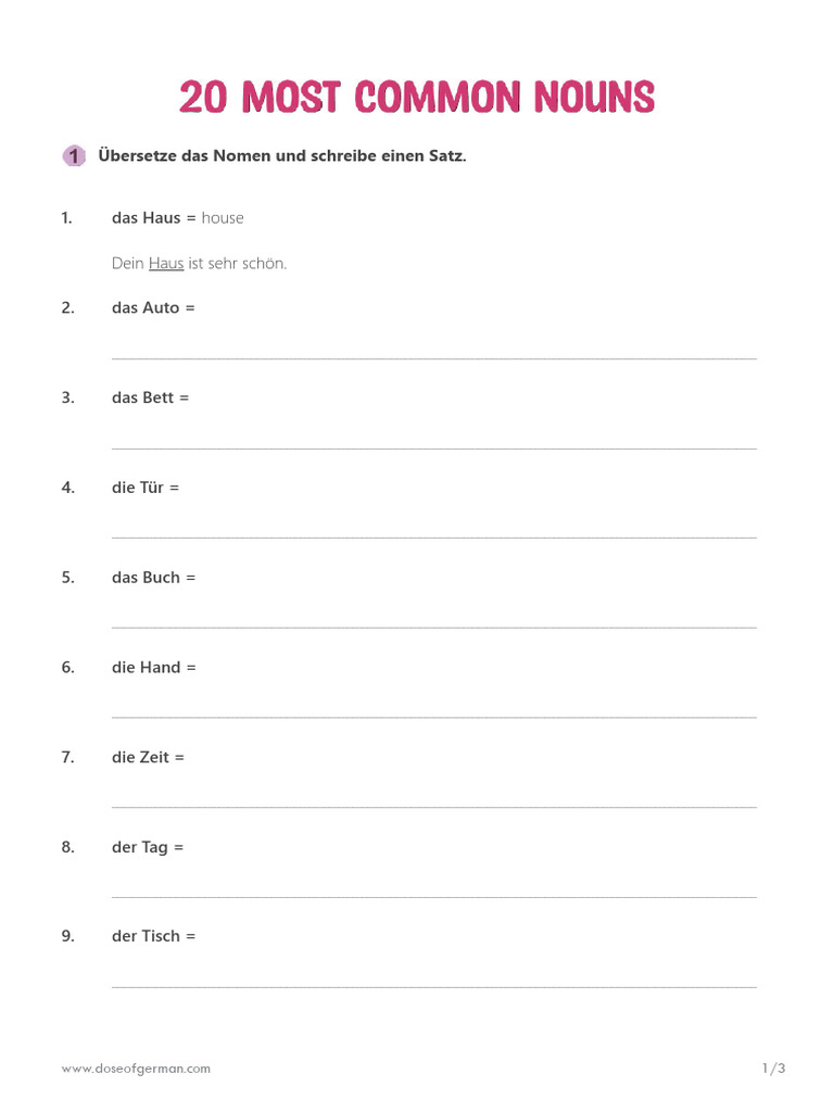 20 Most Common Nouns (Article) Author Dose of German PDF