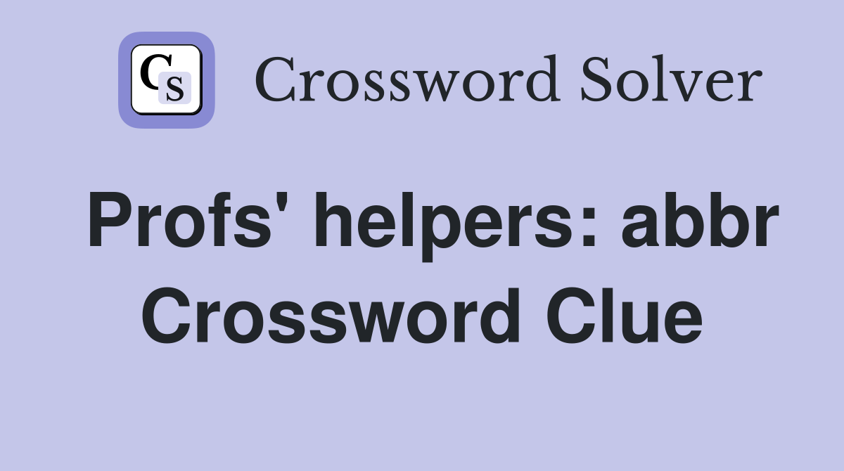 Profs helpers: abbr Crossword Clue Answers Crossword Solver