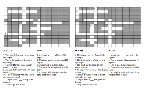 Angles and Triangles Crossword Teaching Resources