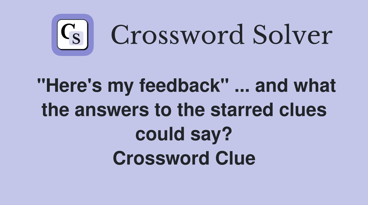 quot Here #39 s my feedback quot and what the answers to the starred clues