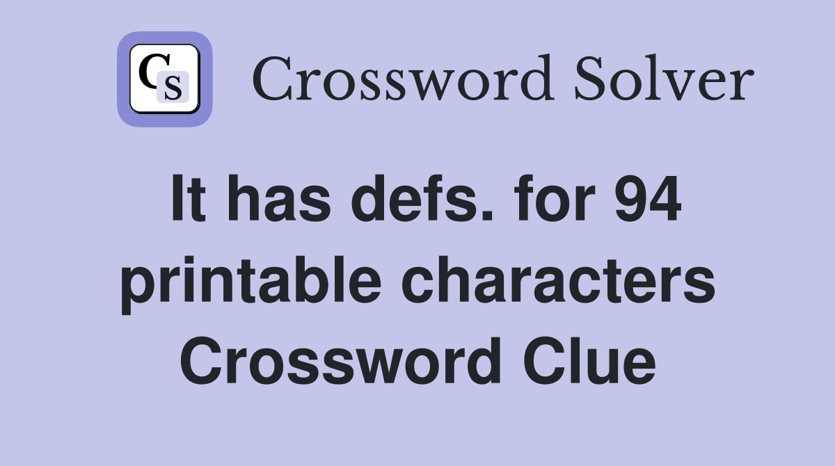It has defs for 94 printable characters Crossword Clue Answers