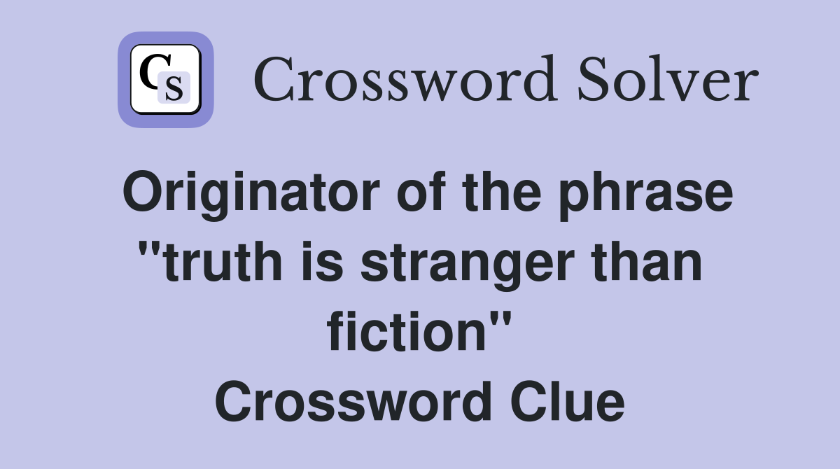 Originator of the phrase quot truth is stranger than fiction quot Crossword