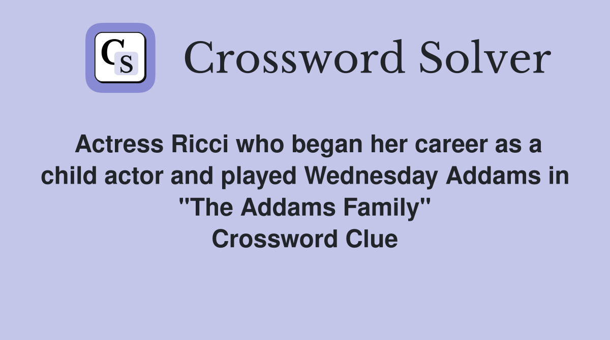 Actress Christina of quot The Addams Family quot Crossword Clue Answers