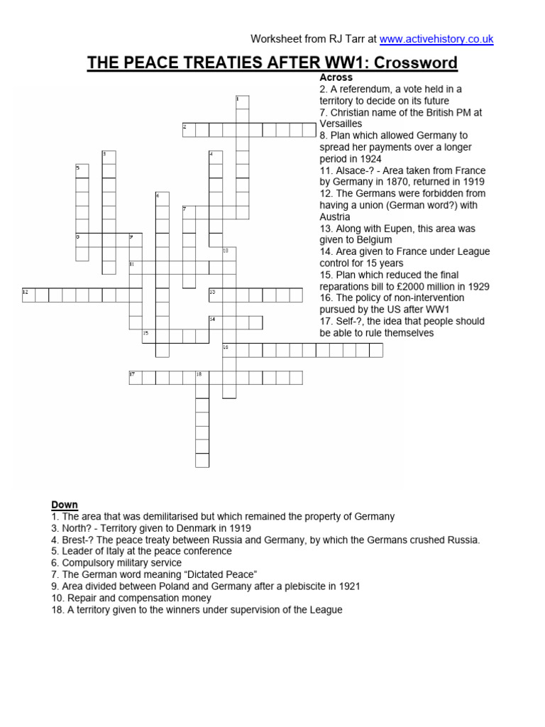 Crossword Peace Treaties PDF Treaty Of Versailles International
