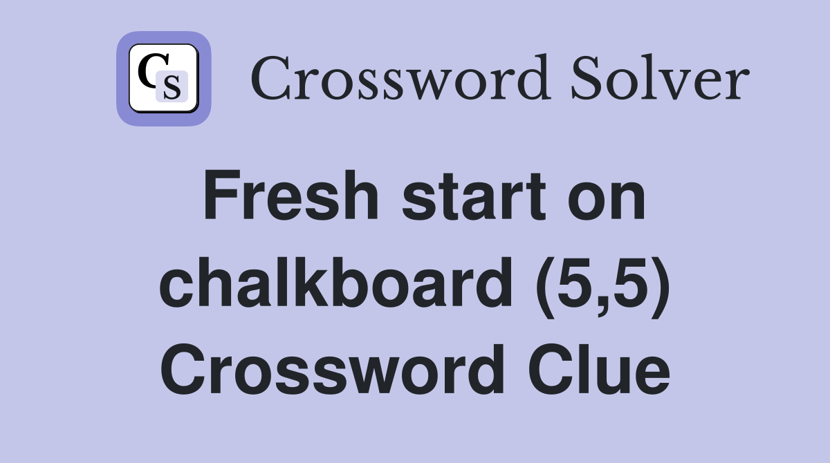 Fresh start on chalkboard (5 5) Crossword Clue Answers Crossword Solver