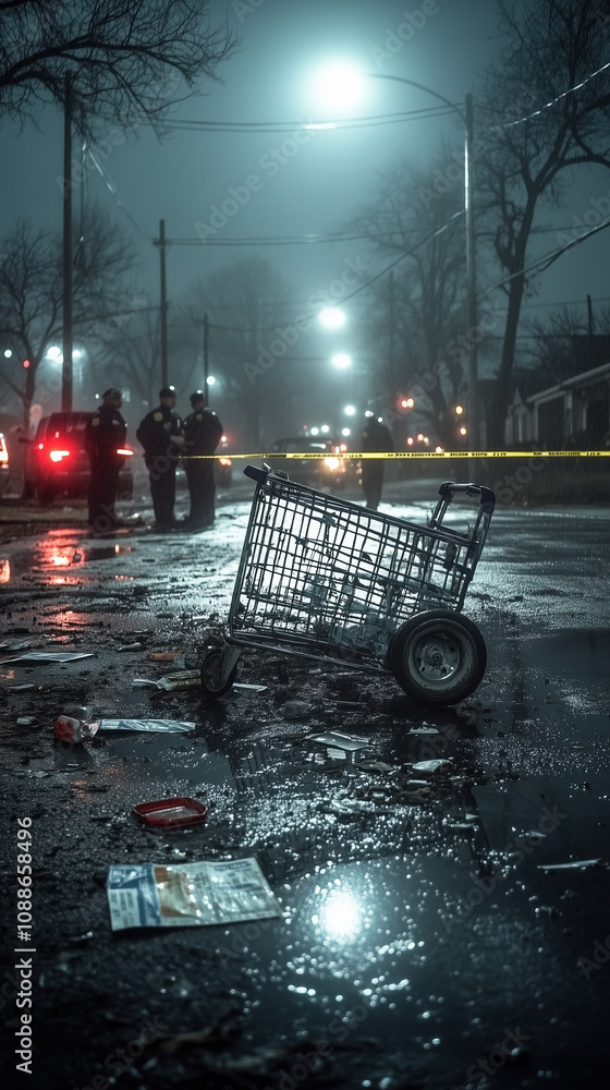 Dramatic Nighttime Crime Scene in Dimly Lit Parking Lot Tilted
