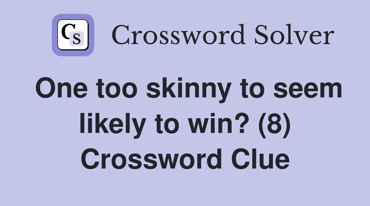 One too skinny to seem likely to win? (8) Crossword Clue Answers