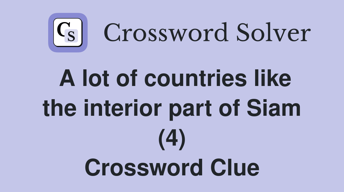 A lot of countries like the interior part of Siam (4) Crossword Clue