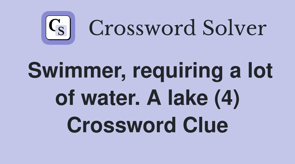 Swimmer requiring a lot of water A lake (4) Crossword Clue Answers