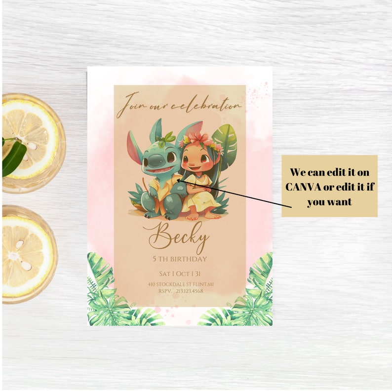 Editable Lilo And Stitch Invitation Lilo And Stitch Birthday Etsy