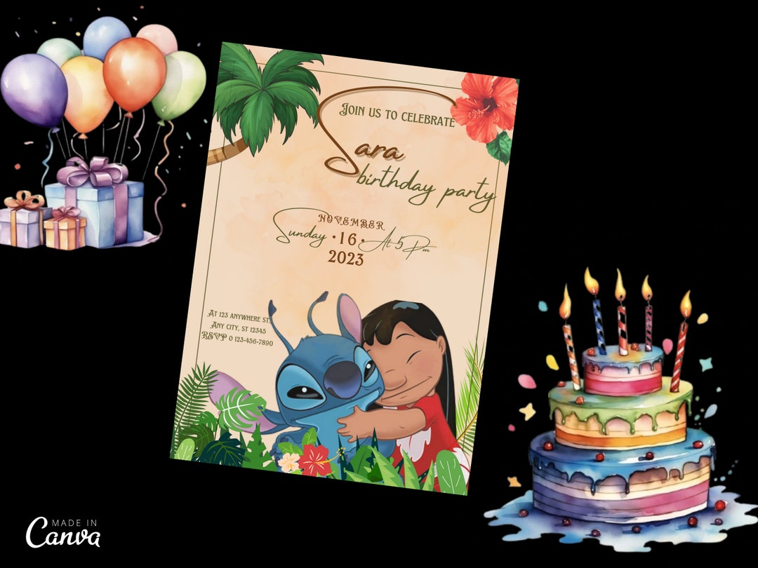 Digital Lilo and Stitch Birthday invitation template Jamakodesigns