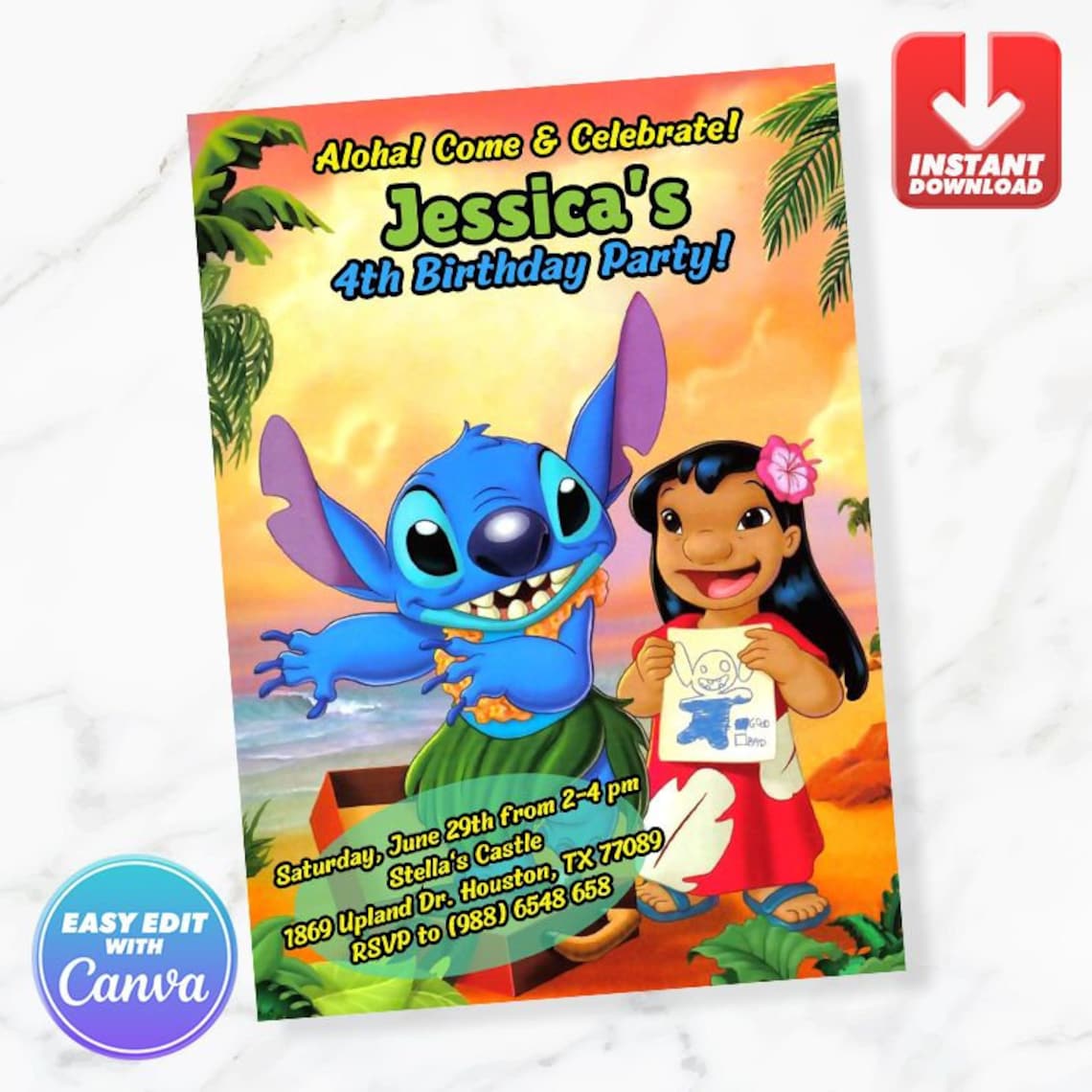 Lilo and Stitch Birthday Invitation instant Download Etsy