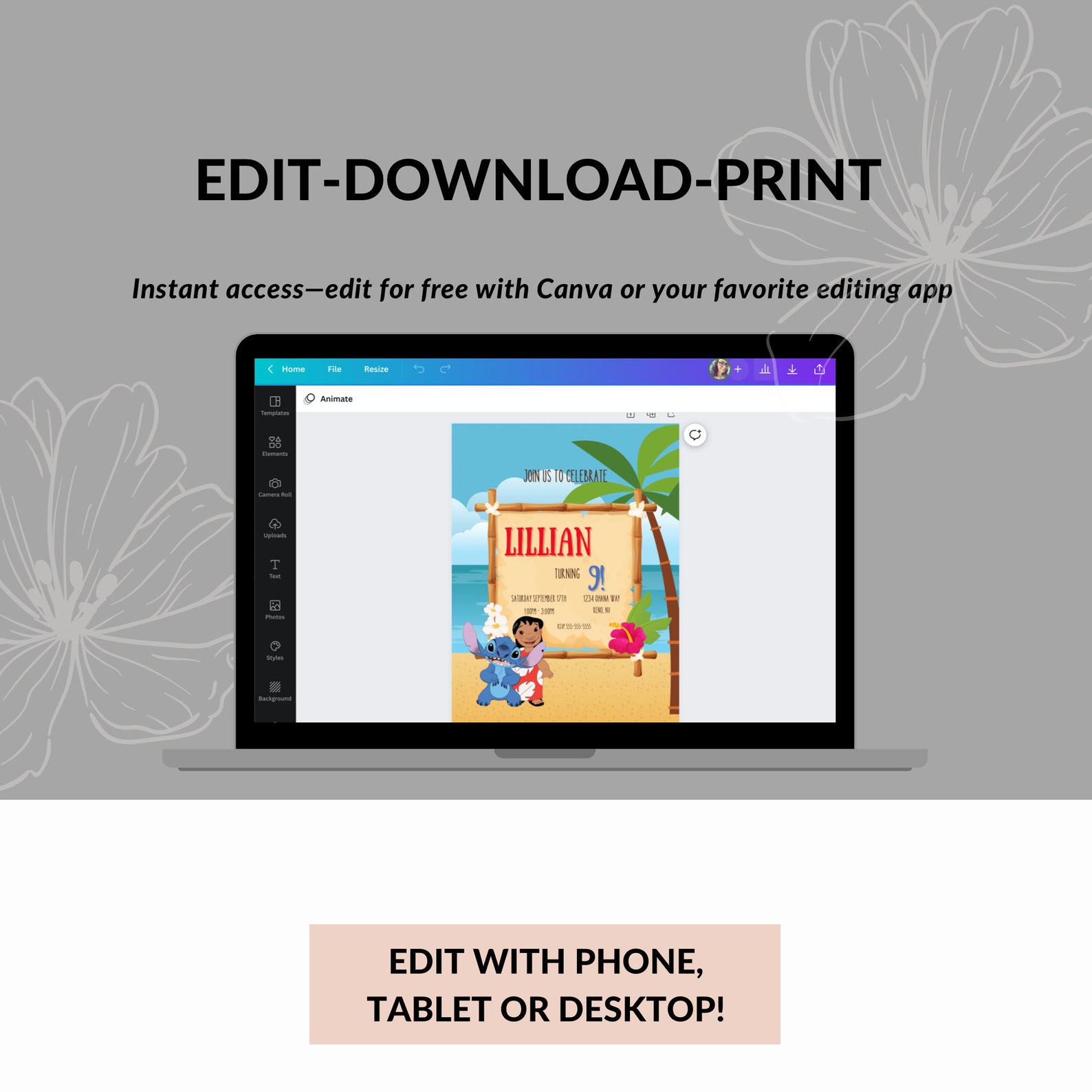 Lilo and Stitch Invitation Lilo and Stitch Editable Template Lilo and