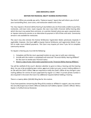 Fillable Online LIMA MUNICIPAL COURT MOTION FOR FINANCIAL ABILITY