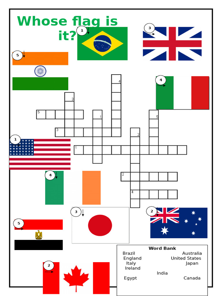 Country Flag Crossword Crosswords Fun Activities Games Warmers Coolers
