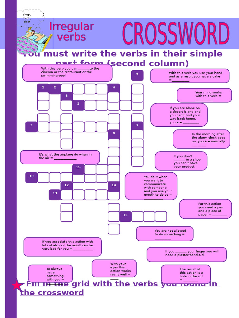 Irregular Verbs Crossword Crosswords Fun Activities Games Warmers