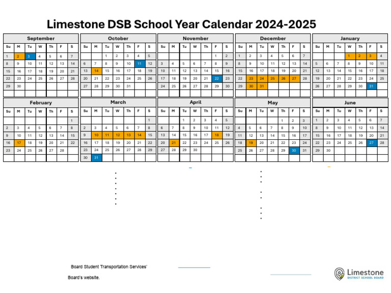Limestone DSB 2024 2025 Calendar PDF Holidays Observances