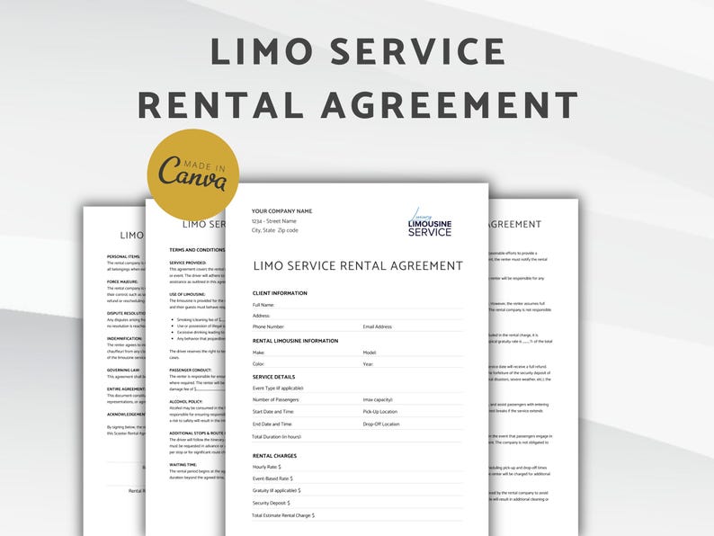 Limo Service Contract Template: Customizable Agreement (MS Word PDF