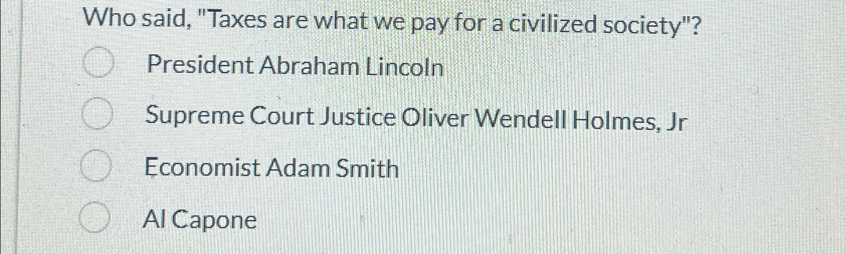 Solved Who said quot Taxes are what we pay for a civilized Chegg com