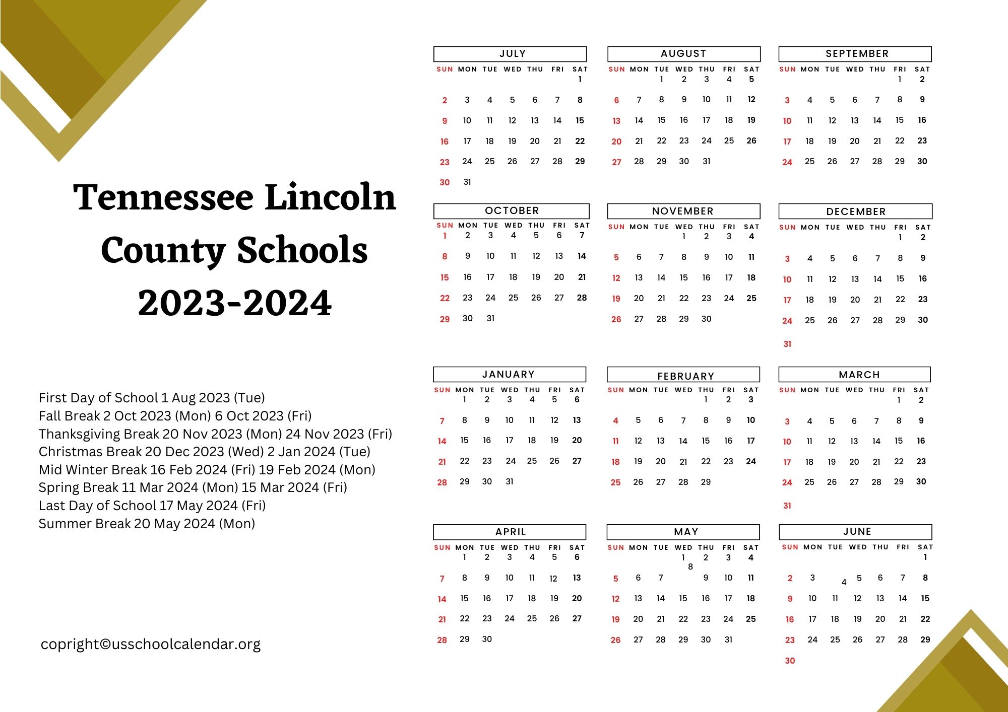 Tennessee Lincoln County Schools Calendar US School Calendar