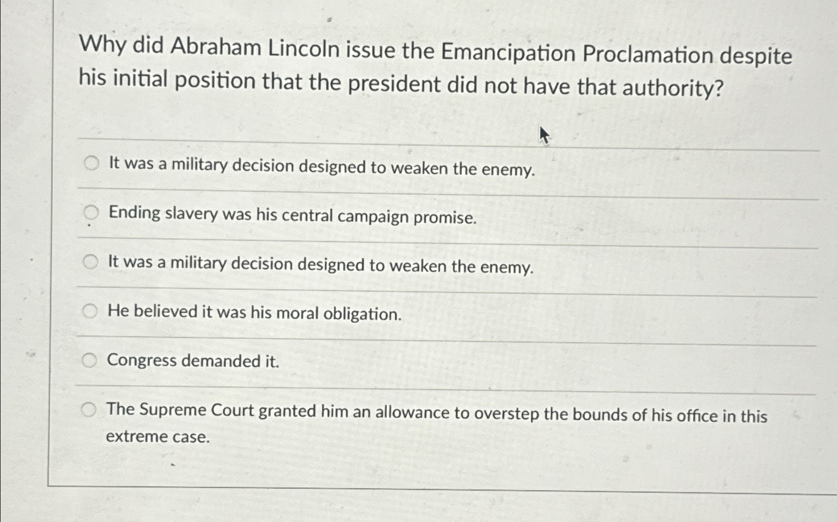 Solved Why did Abraham Lincoln issue the Emancipation Chegg com