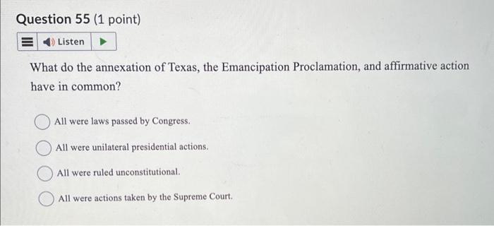 What do the annexation of Texas the Emancipation Chegg com