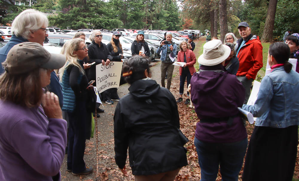 West Seattle Blog LINCOLN PARK PICKLEBALL? Court opponents gather in