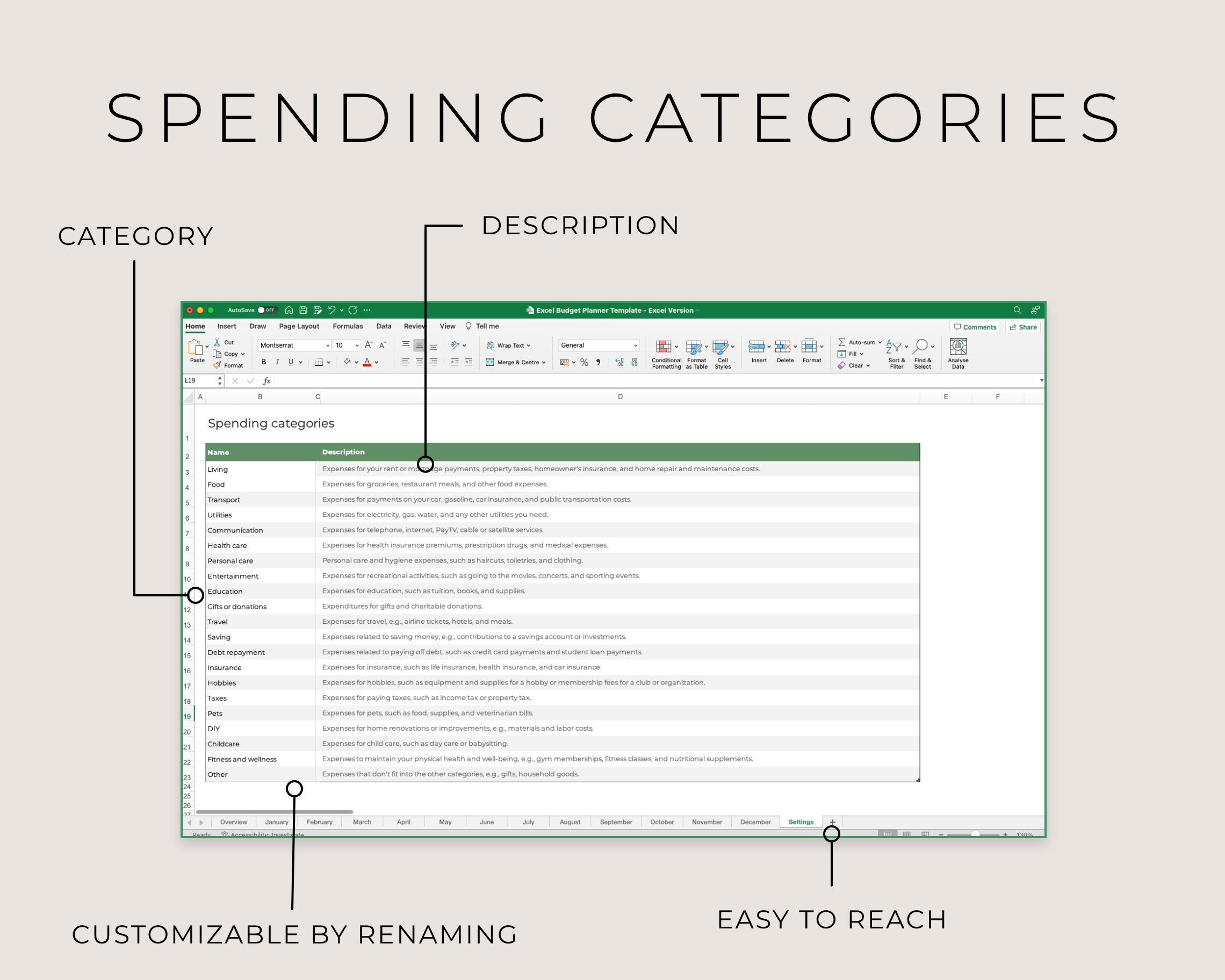Budget Spreadsheet Excel Budget Template Customizable Categories