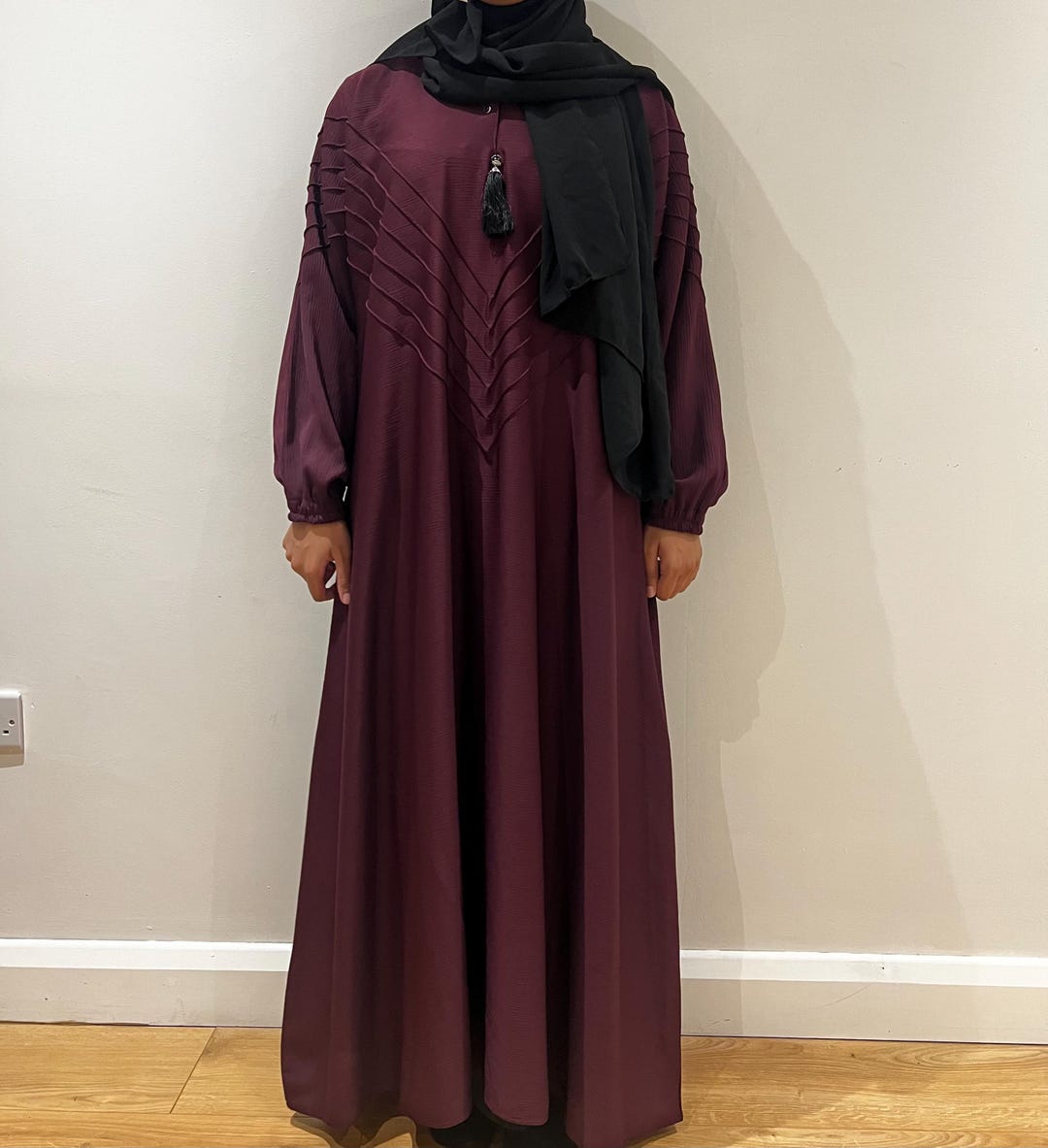 Line Stitching Cuffed Sleeve Abaya Stripe Design Long Dress Islam