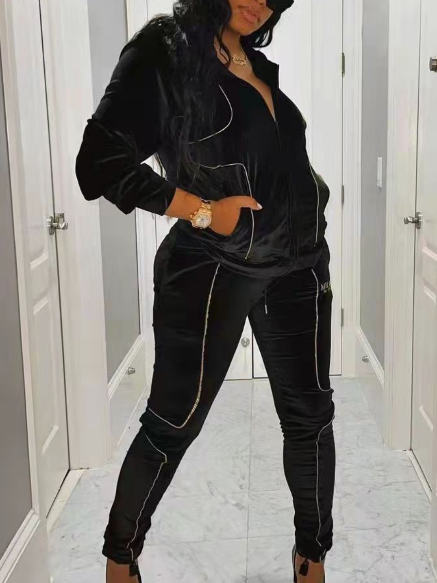 LW Velvet Line Stitching Pocket Design Pants Set Sale LovelyWholesale