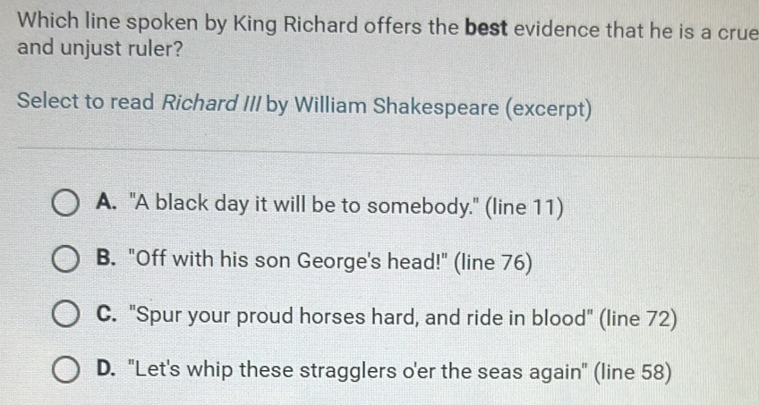 Solved: Which line spoken by King Richard offers the best evidence that