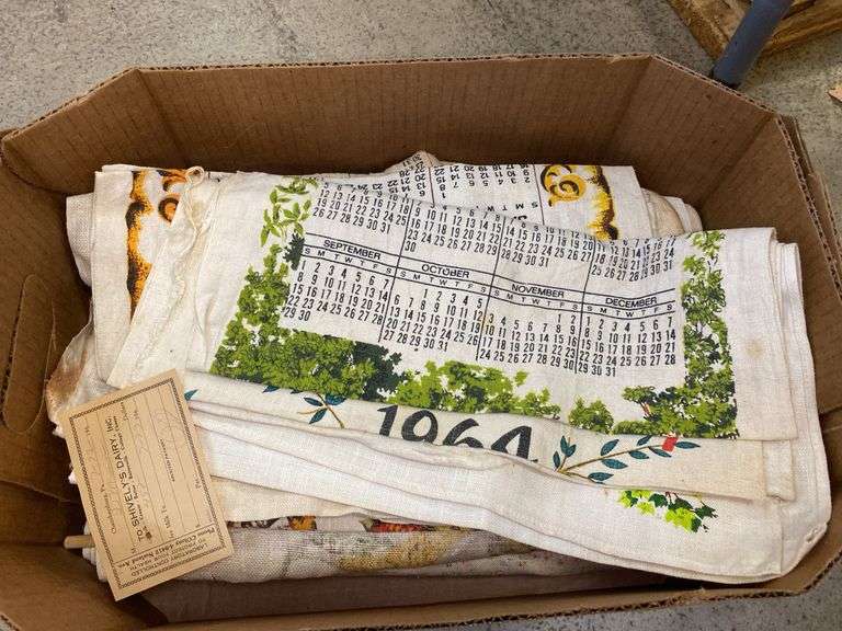 Vintage 1960s 70s linen calendar towels Hurley Real Estate Auctions