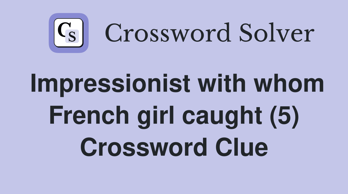 Impressionist with whom French girl caught (5) Crossword Clue Answers