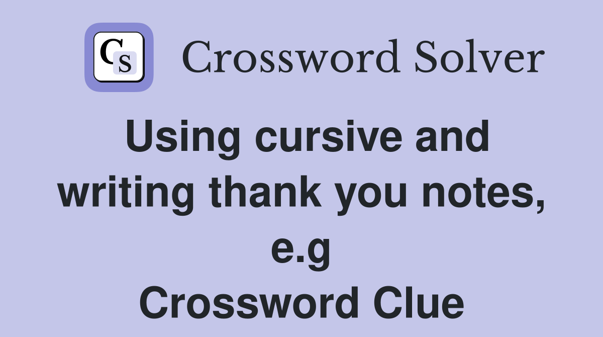 Using cursive and writing thank you notes e g Crossword Clue