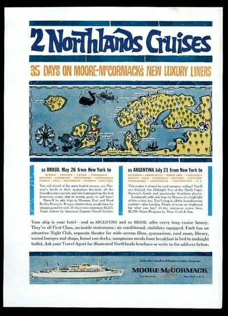 1960 MOORE MCCORMACK LINES cruise ship travel Europe map vintage print