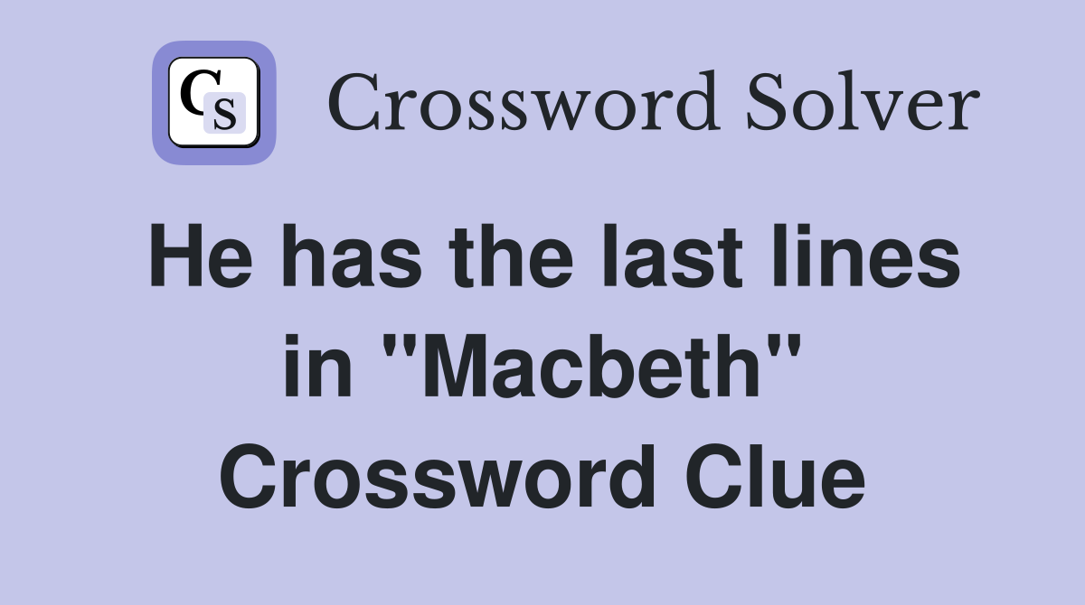 He has the last lines in quot Macbeth quot Crossword Clue Answers Crossword